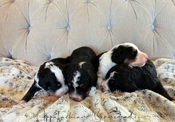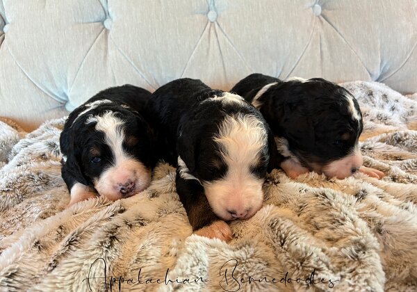 Chanel, Our AKC Bernes and Giorgio, Our AKC Standard Tri colored Parti Poodle have some beautiful puppies Born Sep 19th Ready for new homes Nov 14th 4 Boys and 3 Girls .. Call/Text Marcy 423-863-9740